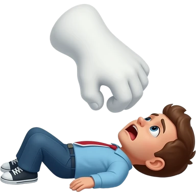 a white foot paw hovering above a tiny person who is laying back in fear emoji