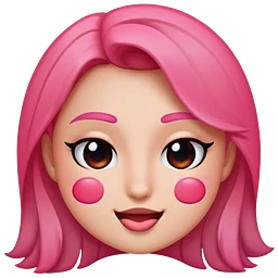 “Emoji girl, pastel pink streaks in black hair hair, bold winged eyeliner, heavy blush on cheeks and nose bridge, under-eye hearts, glossy pink lips, playful smirk and gaming headphones and cat ears.” emoji