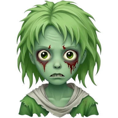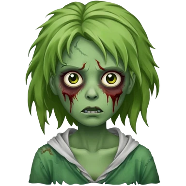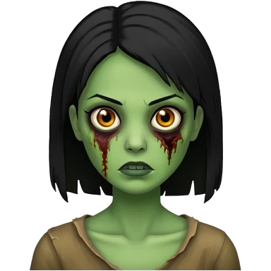 Faça uma zombie verde mulher com cabelos pretos e lisos de olhos castanhos emoji