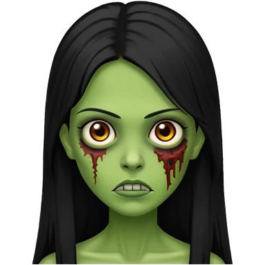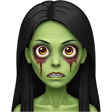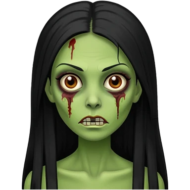Faça uma zombie verde mulher com cabelos preto, liso e longo de olhos castanhos emoji