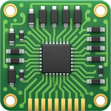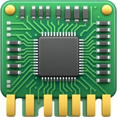 brain emoji with a computer circuit board texture, featuring electronic components and green circuit lines emoji