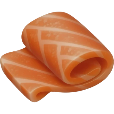 single thin slice of smoked salmon with smooth translucent texture, rich orange-pink hue, irregular natural edges, delicate white marbling, slight folds, soft melt-in-the-mouth feel, no plate, lemon, or garnish, soft lighting, subtle shadows, emoji scale emoji