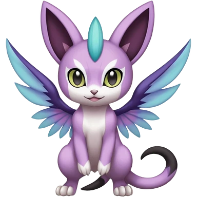 Smooth Soft Dark Pastel Meloetta-Purrloin-Gatomon-Noibat-Pokémon-Digimon-Fakémon-fusion-hybrid-creature emoji