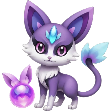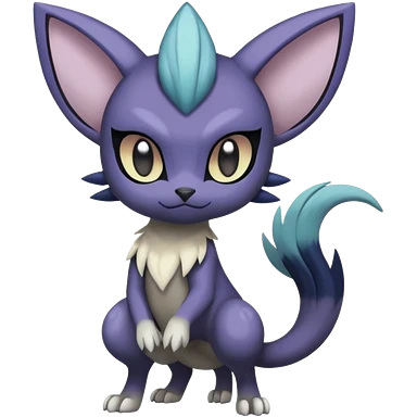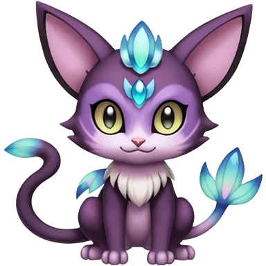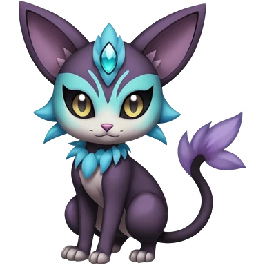Smooth Edgy Cool Dark Dusky Gloomy Meloetta-Purrloin-Gatomon-Trico-Pokémon-Fakémon-fusion-hybrid-creature emoji | AI Emoji Generator