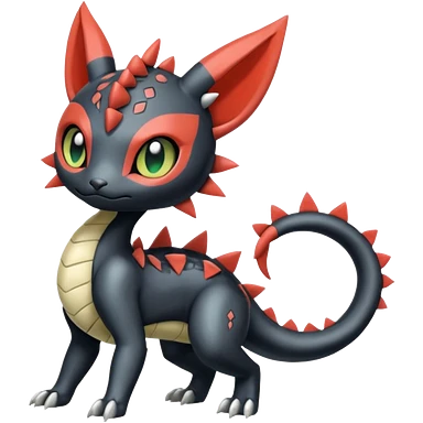 Colorful shiny smooth glossy soft orange red black yellow Bastet-Salandit-Umbreon-Gatomon-Vernid-Protogen-Digimon-Fakémon-Pokémon-creature (full body) emoji