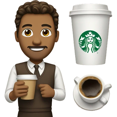 teddy bear wearing green apron with one cup of starbucks coffee emoji