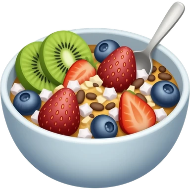 smoothie bowl with bananas, raspberries and blueberries emoji