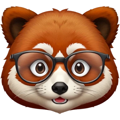 A red panda with serious eyes and a furrowed brow, and glasses. emoji
