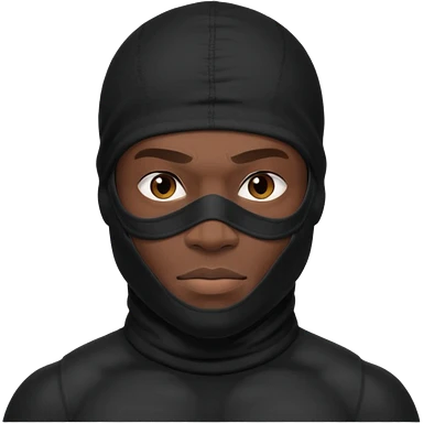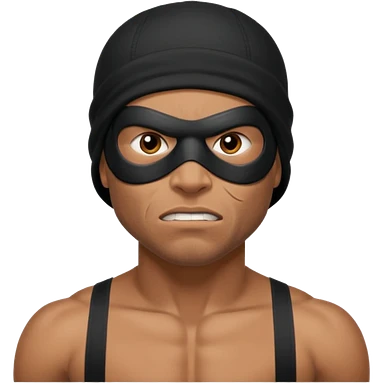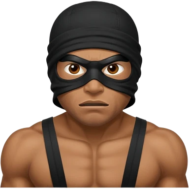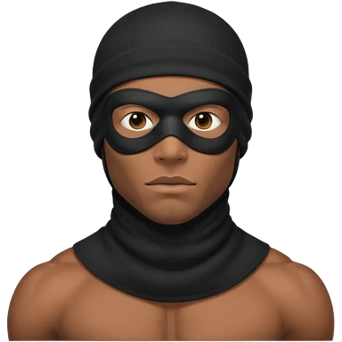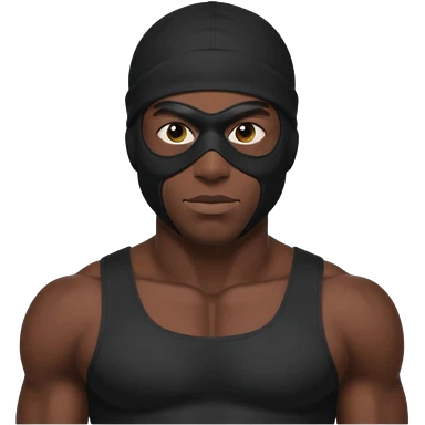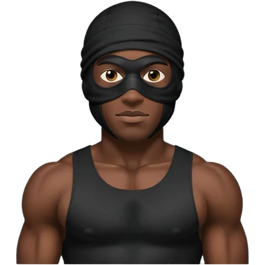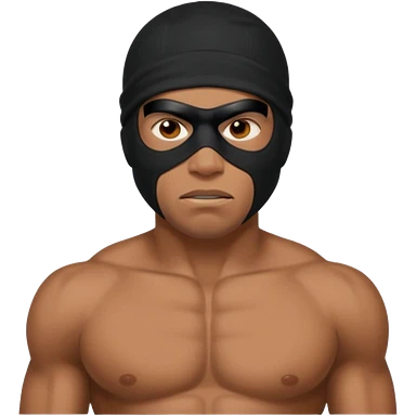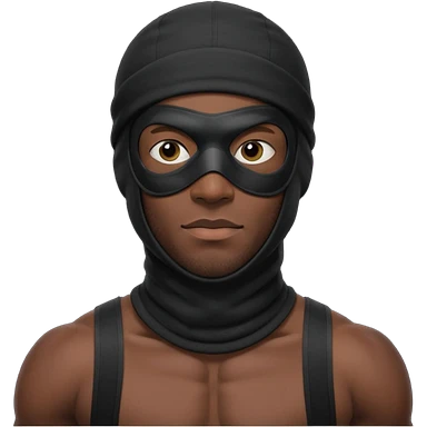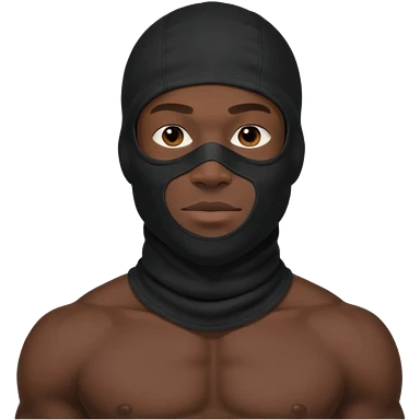 smug muscular african male black baraklava ski mask wearing guy with no top. emoji | AI Emoji Generator