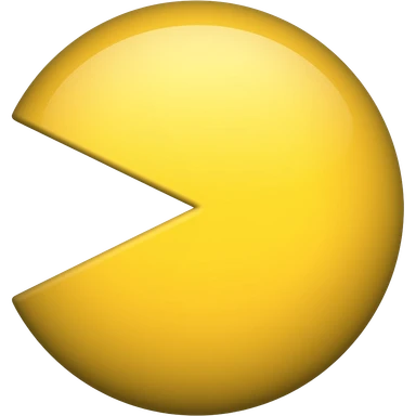Classic Pacman side view, yellow circle with triangular mouth opening, no limbs, pure arcade style emoji