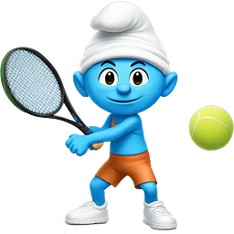 Light Blue Smurf playing tennis with Smurf racket emoji