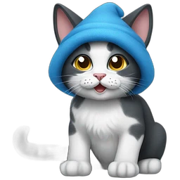 smurf with cat blue head shape, white hat, kitten blue head emoji