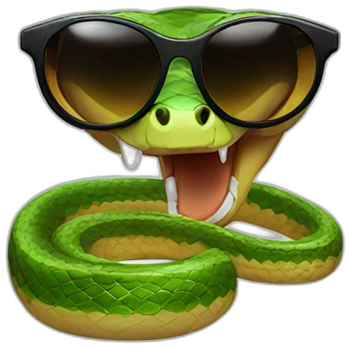 friendly anthropomorphised snake in sunglasses, jacket and sneakers, walking with a smile emoji