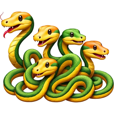 Two symmetrical green snakes tangled at their tails, facing each other, hissing emoji