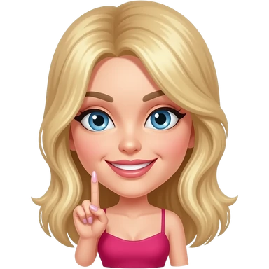 girl with long wavy brown hair, brown eyes, long lashes makeup, sexy pink lips, light to medium complexion, pink sexy top, smiling, hand by the cheek snapping fingers emoji