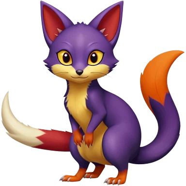 Colorful Painted Asian Cartoony Anime-styled Sneasel-Minccino-Zoroark-Buizel-Zangoose-hybrid-fusion, full body emoji