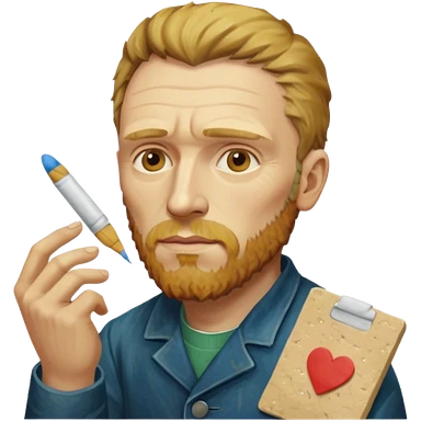 van gogh paints on a canvas. right ear is bandaged. emoji