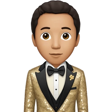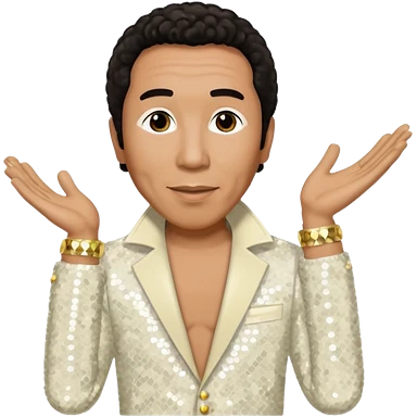 Smokey Robinson with dark brown hair, ivory sequin outfit emoji