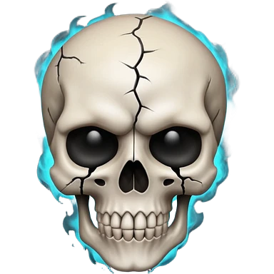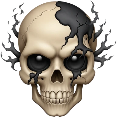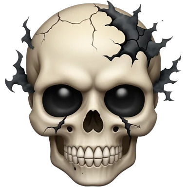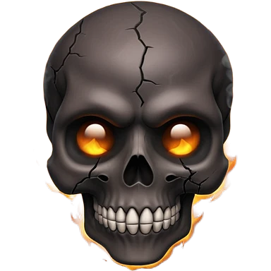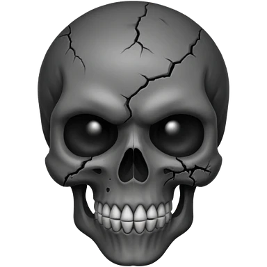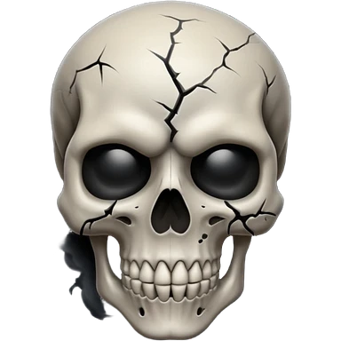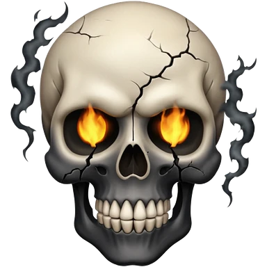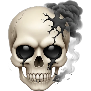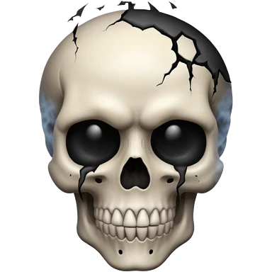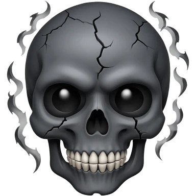 iOS style emoji, dark fantasy skull, cracks, black smoke from eyes, soft light, stylized emoji