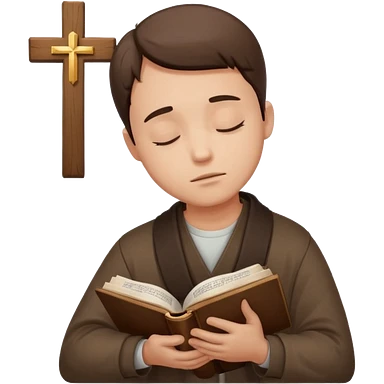 Guy who reads Bible with cross on it and with his eyes closed in prayer and without anything in the background emoji