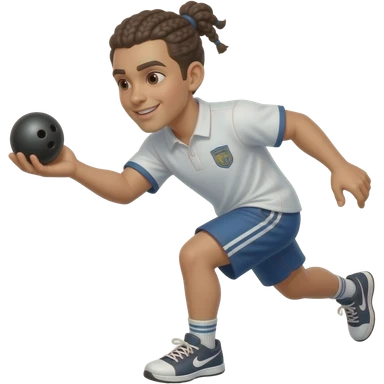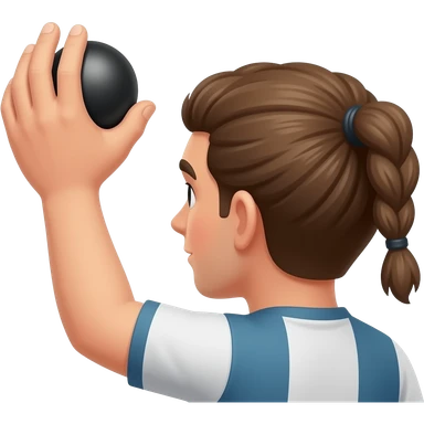 Junger dynamischer männlicher mit Zopf petanque spieler kurz vor dem abwurf der schwarzen kugel emoji