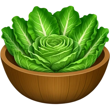fresh head of lettuce, broad green leaves, crisp, curled edges, outer leaves deep green, inner leaves pale yellow, leafy, ruffled, natural veining, moist, base stem end visible, 3D, clean, minimal, soft shadows, transparent background, emoji scale emoji