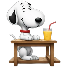 Snoopy breathing up sugar with a straw through his nose emoji | AI Emoji Generator