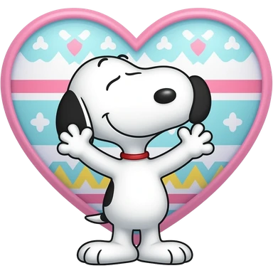Snoopy standing UNDERNEATH a big easter heart emoji