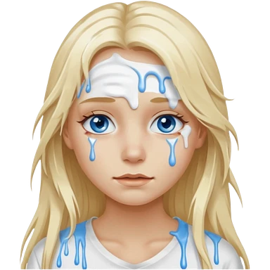 Blonde blue-eyed long hair girl emoji with white paint all over its face dripping emoji