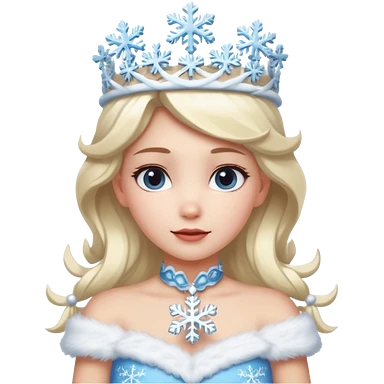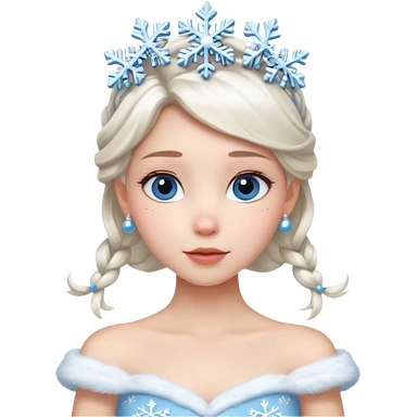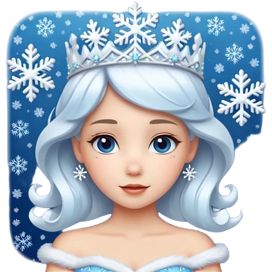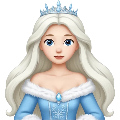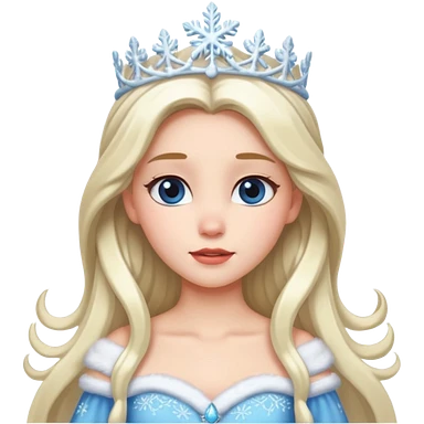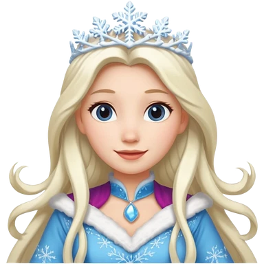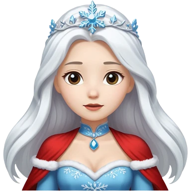 snow princess with long hair wearing snow chirsmas clothes looking at the front emoji