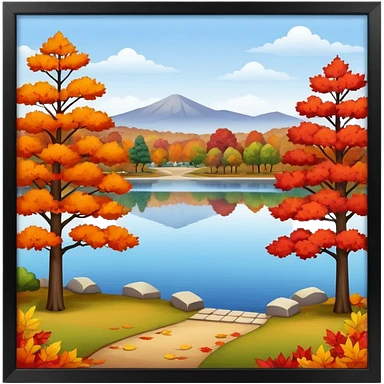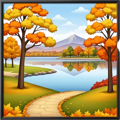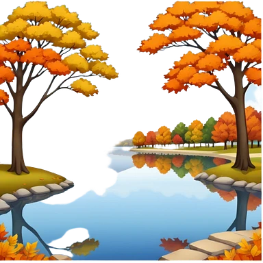 a park with a lake in autumn season emoji
