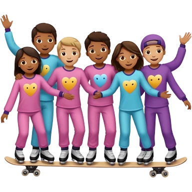 skating rink sleepover with teen boys & girls skin color brown and tan emoji