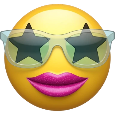smiley face emoji with star see through sunglasses and bright pink sparkley lips emoji