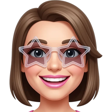 smiley face emoji with see through sunglasses star shapedand bright pink sparkley thin lips emoji