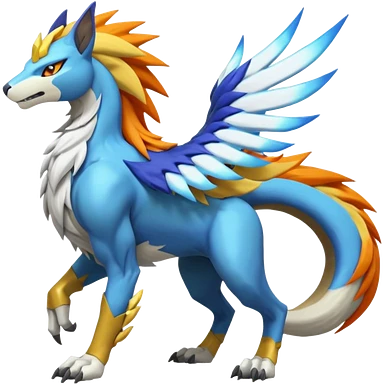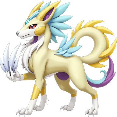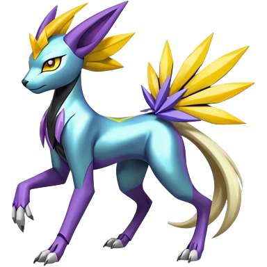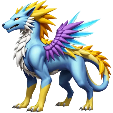 Colorful Futuristic Meloetta-Manectric-Solgaleo-Raikou-Pokémon-Digimon-Fakémon-fusion-hybrid-creature emoji