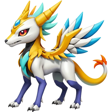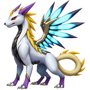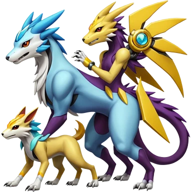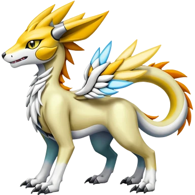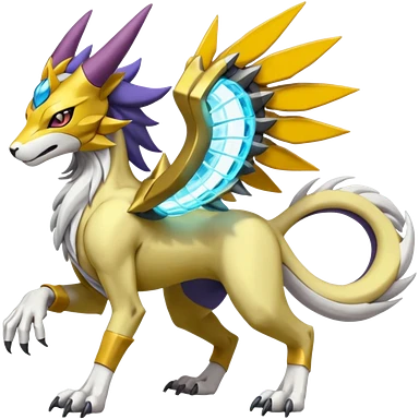 Colorful Futuristic Meloetta-Solgaleo-Raikou-Wargreymon-Sergal-Pokémon-Digimon-Fakémon-fusion-hybrid-creature emoji