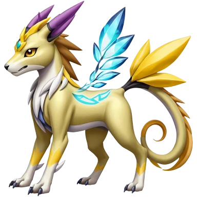 Colorful Futuristic Meloetta-Manectric-Solgaleo-Raikou-Wargreymon-Sergal-Pokémon-Digimon-Fakémon-fusion-hybrid-creature emoji
