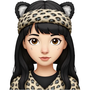 woman, black shoulder length hair, bangs, snow leopard fur headband emoji