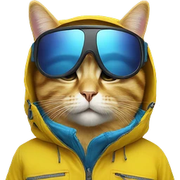 yellow snowboarding cat with blue jacket and ski glasses emoji