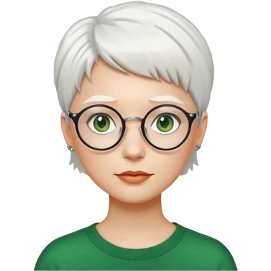 visage femme a lunettes ronde avec cheveux courts blancs aux yeux verts emoji