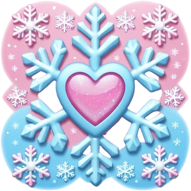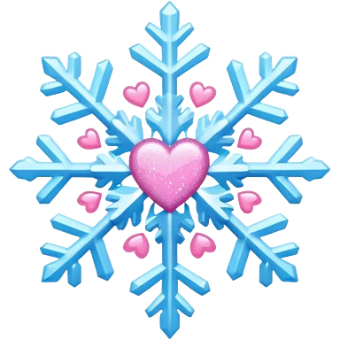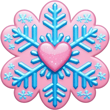snowflake pink heart color white baby blue and pink glitter glow basic realist emoji | AI Emoji Generator