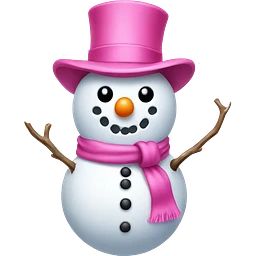Snowman with a black hat rocks for eyes and a stick sticking out of the second snowball emoji