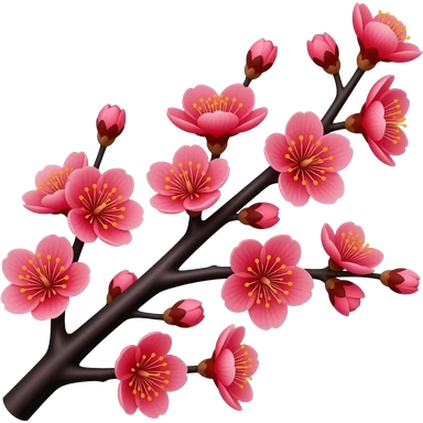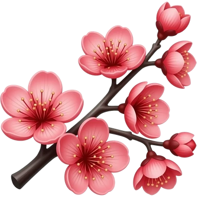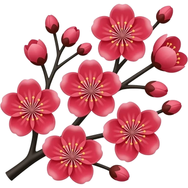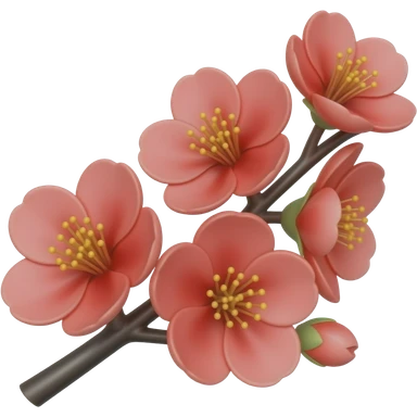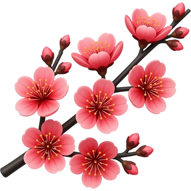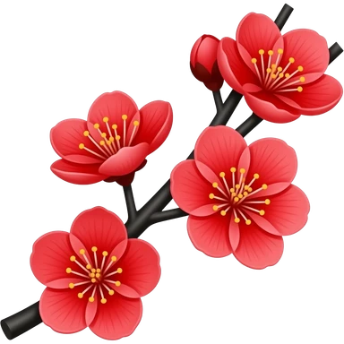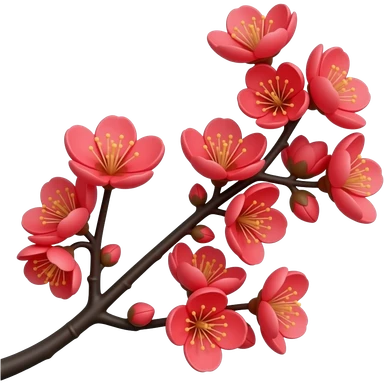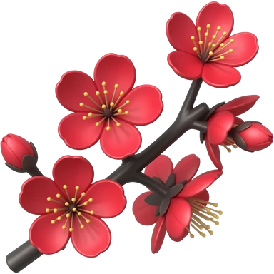 2D Render iPhone emoji png of red cherry blossom flowers on black branches emoji