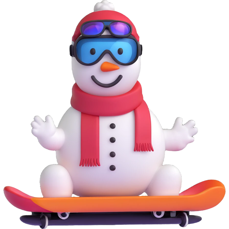 snowman with goggles on a snowboard emoji | AI Emoji Generator
