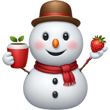 snowmen holding strawberry and coffe emoji