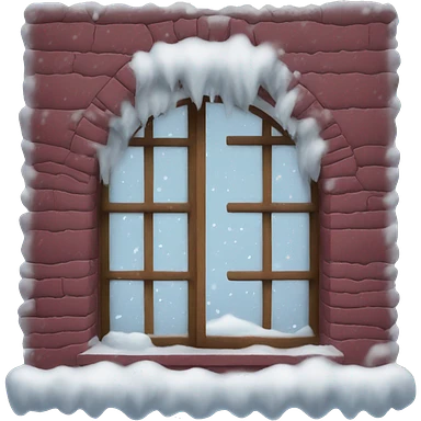 Window overlooking a snowy landscape with gold lights around the window frame emoji