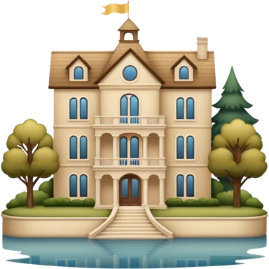 Light yellow sorority house mansion, southern, isometric dollhouse-style, realistic emoji