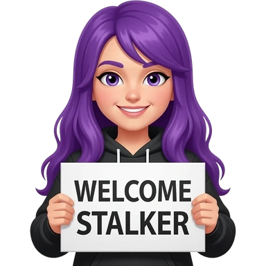 girl with long purple hair holding a WELCOME STALKER sign emoji