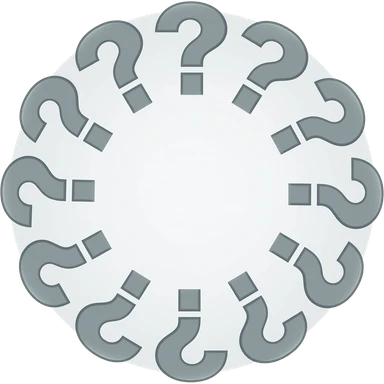 a simplified human figure with a puzzled expression, surrounded by multiple overlapping question marks, and data symbols to represent too many choices. emoji