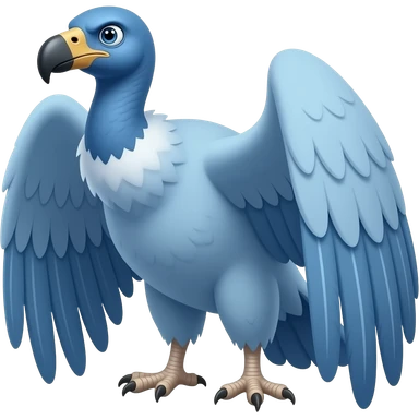 A Condor emoji. It's not a generic Condor, it's a Vultur Gryphus. Ensure it has a light Cobalt blue tone in its feathers, and the same Cobalt blue, but more intense, in the skin of its neck and head, without other exaggerated colors. Full-body pose. Ensure a cartoonish, menacing, yet confident look. emoji